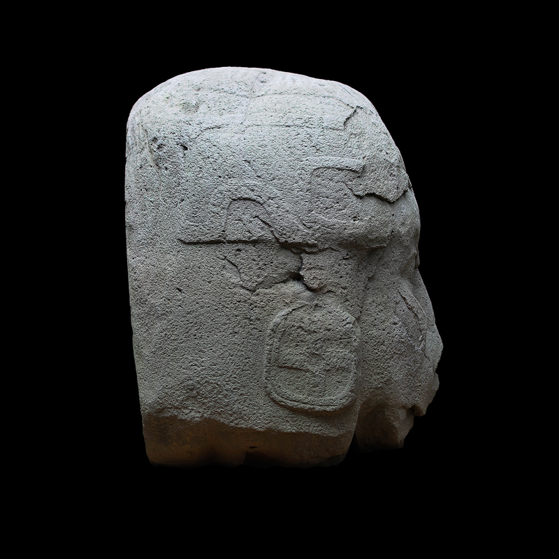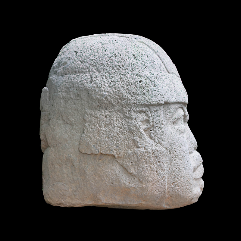 Esta cabeza junto con la No. 2 y 3 fueron dispuestas en un eje este-oeste, a la entrada del Complejo A, del asentamiento prehispánico de La Venta, espacio delimitado por basamentos piramidales y monumentos escultóricos que le dan el carácter de sagrado. Se asemeja a las otras por sus rasgos faciales, sin embargo, este gobernante-guerrero presenta elementos iconográficos distintos; sobre el casco que cubre la cabeza tiene una garra posiblemente de ave arpía, cuyos atributos de agilidad para volar entre la selva, percibir los movimientos de su presa y su visibilidad nocturna podrían estar asociándose al personaje representado.